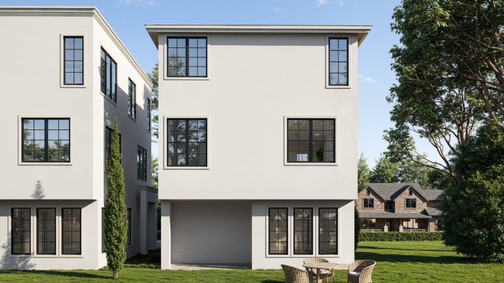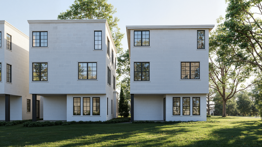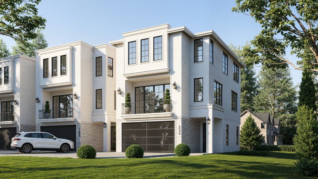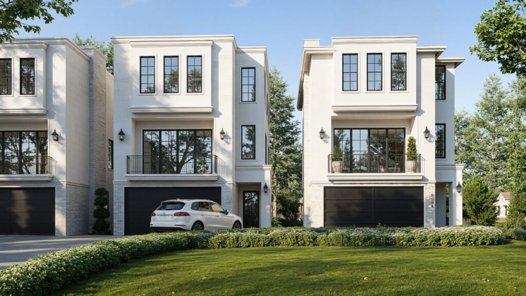 Elevated 2,124 sq ft townhomes featuring modern French country architecture, 3 bedrooms, an office, open-concept living, and a private 2-car garage.