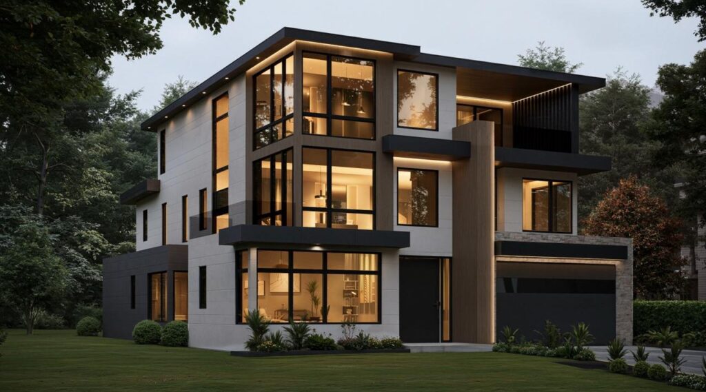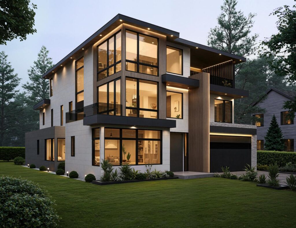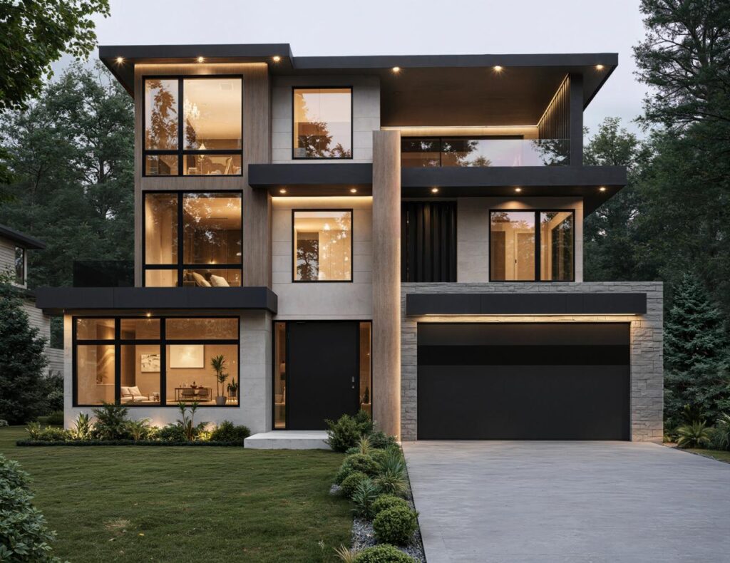 A striking contemporary residence in Bellevue, featuring bold architectural forms, premium materials, and seamless indoor-outdoor living. Clean lines, expansive glazing, and meticulous landscaping define this custom-built home designed for modern luxury living.